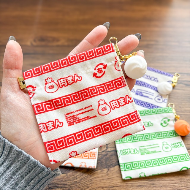 肉まんの裏の紙をモチーフにしたポーチです。 かわいい肉まんのミニチャーム付き! 小さな物を収納できるコンパクトで使いやすいサイズ感です。 片手で簡単に開閉できるバネポーチです。 お好みでボールチェーンやカラビナをつけることもできます。 ▼サイズ 縦9cm 横10cm 多少の誤差はございます。 ▼種類 ・肉まん(赤) ・あんまん(紫) ・カレーまん(オレンジ) ・ピザまん(緑) ▼発送 基本的にネコポスでの発送です。 複数ご購入の場合、宅急便等に変更させていただく場合がございます。(送料の加算はありません) 7日〜10日程で発送となります。 ▼ご注意 多少の歪みやズレがございます。 チャームは3Dプリンター製です。プリンター特有の層が目立つ部分がございます。