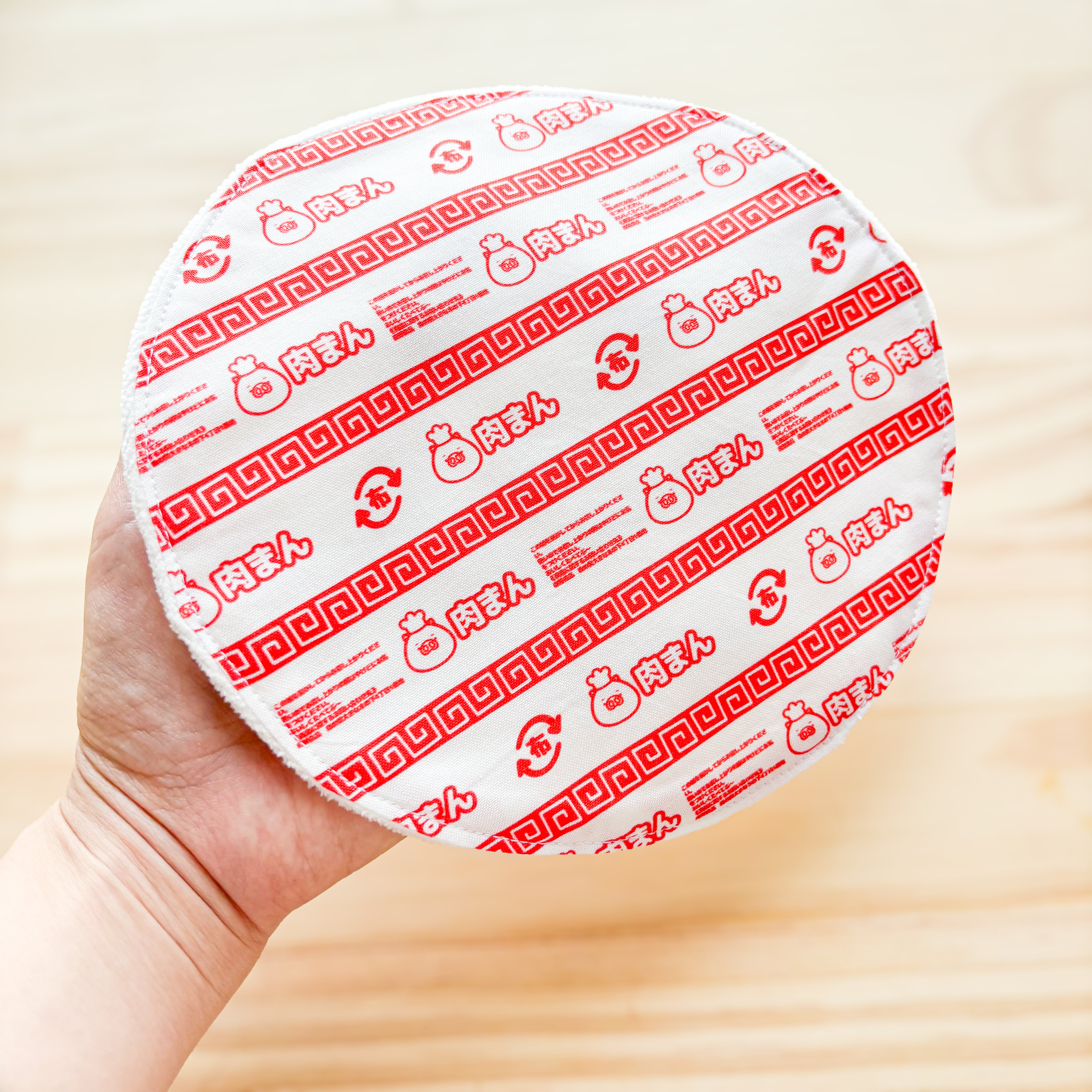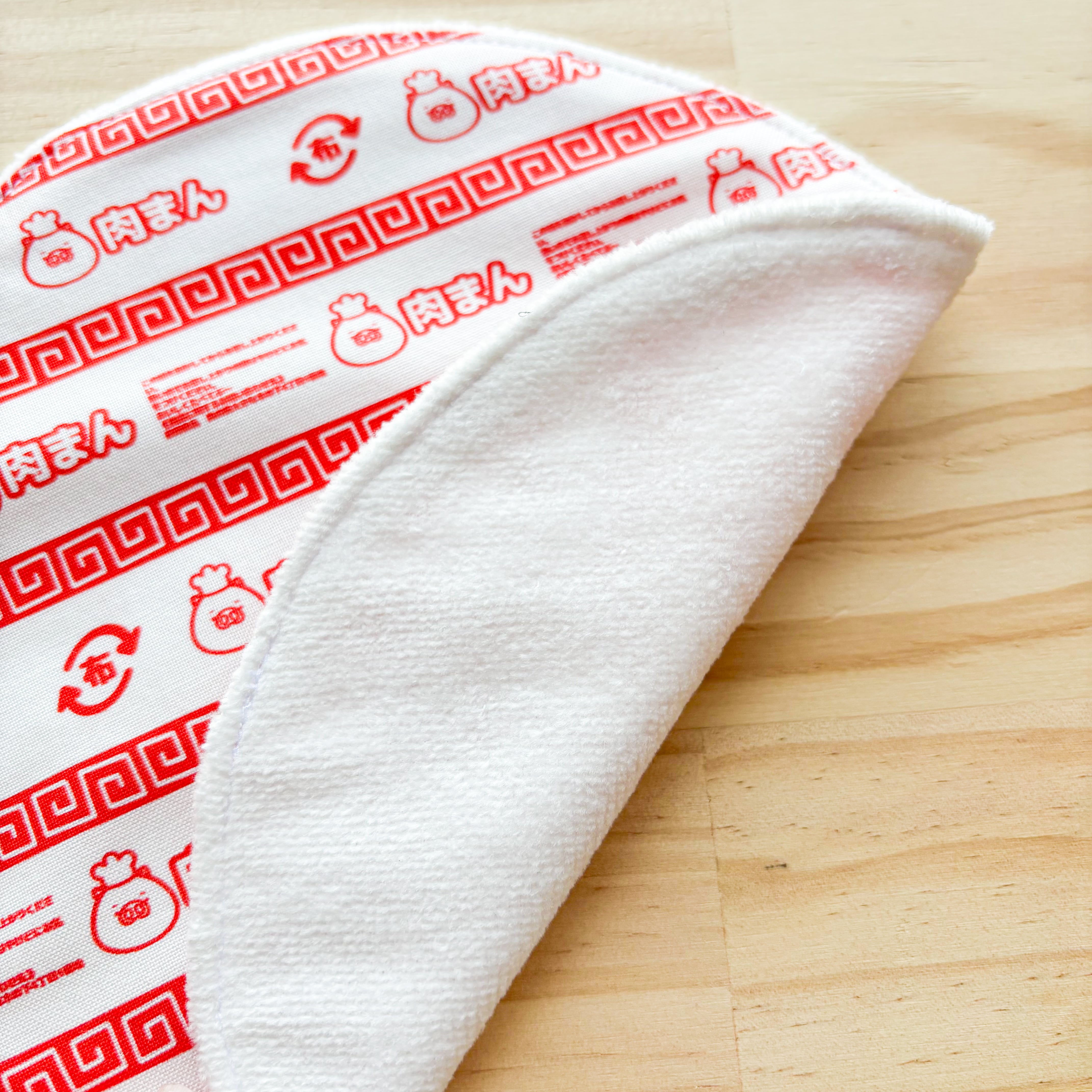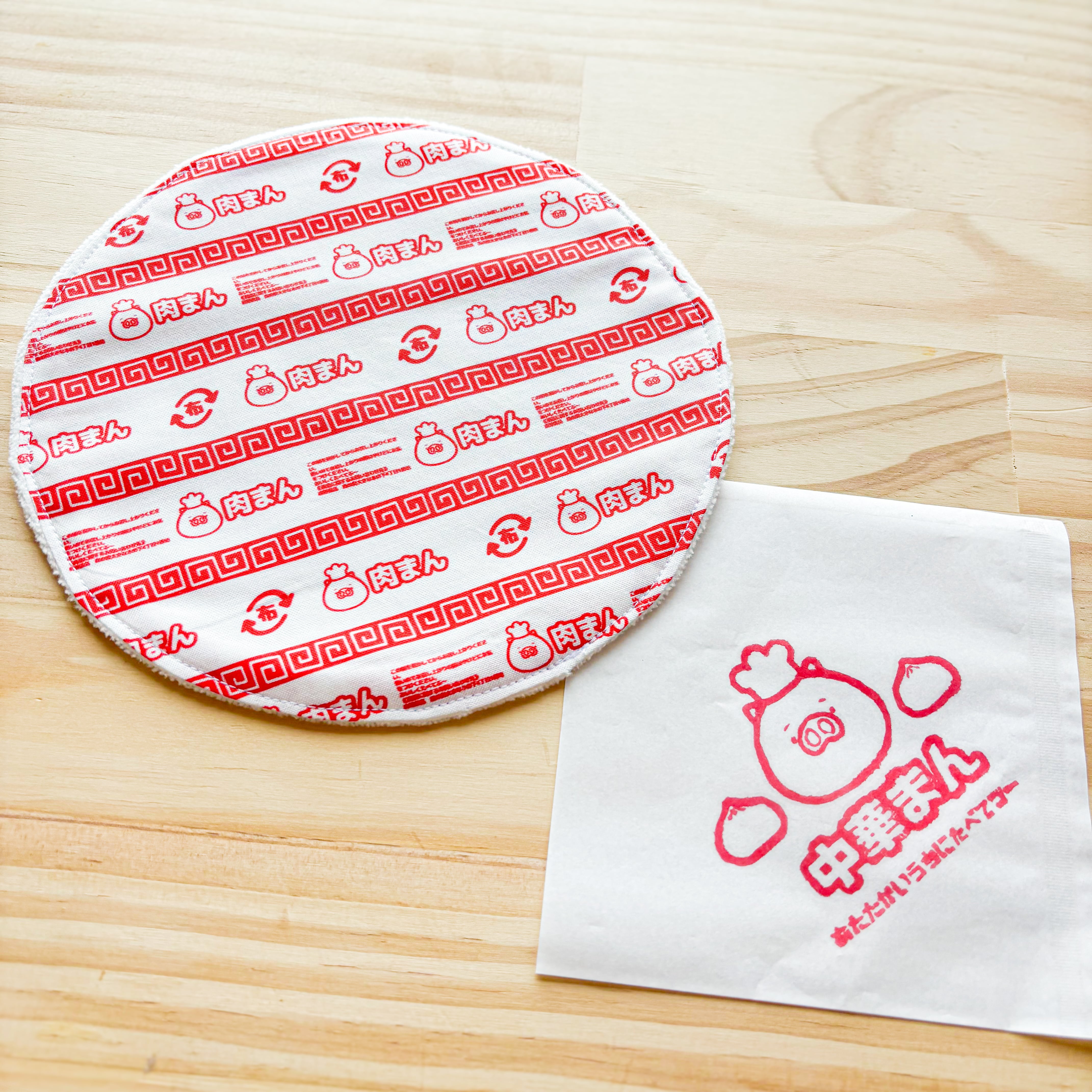 肉まんの底についているアノ紙をモチーフにしたタオルハンカチです。