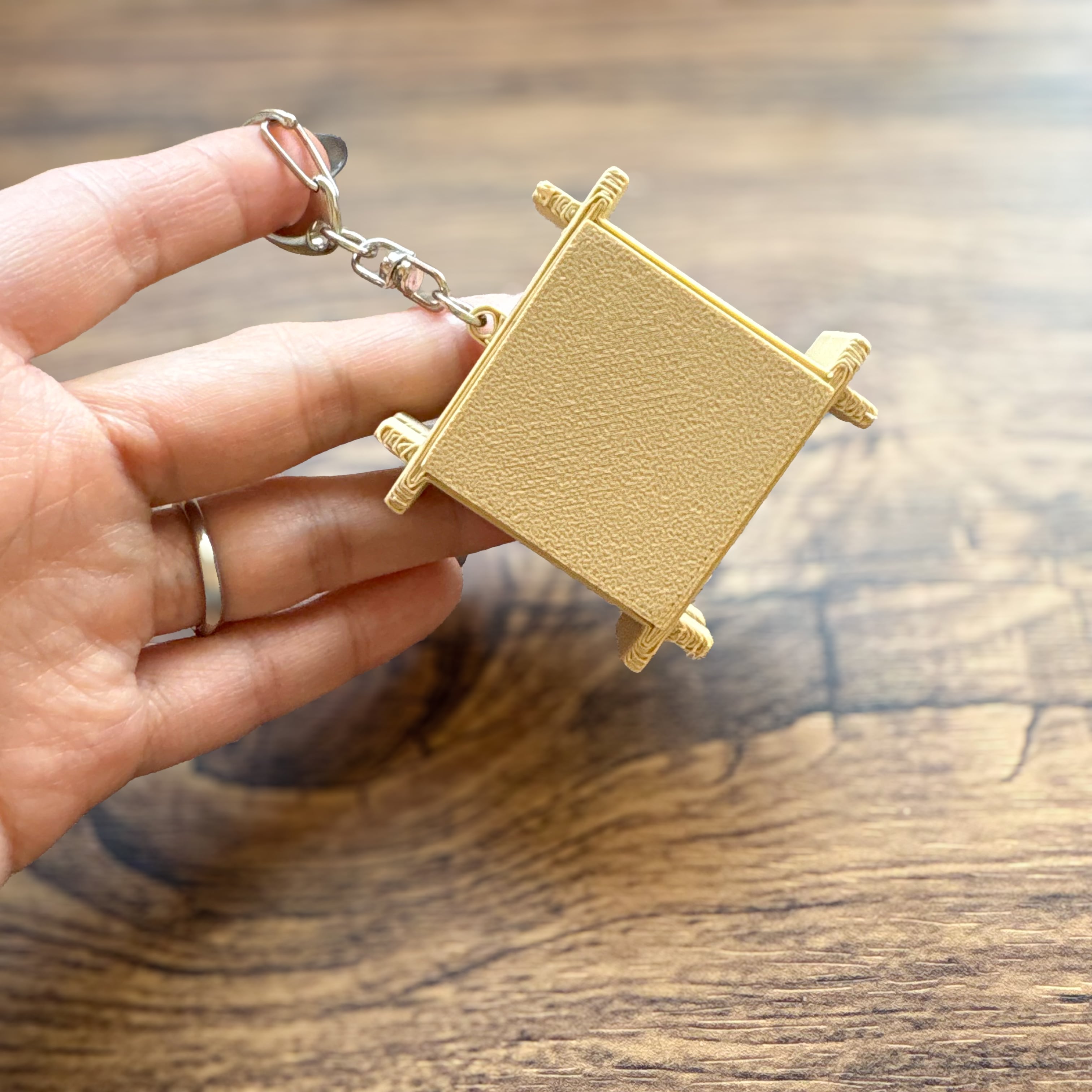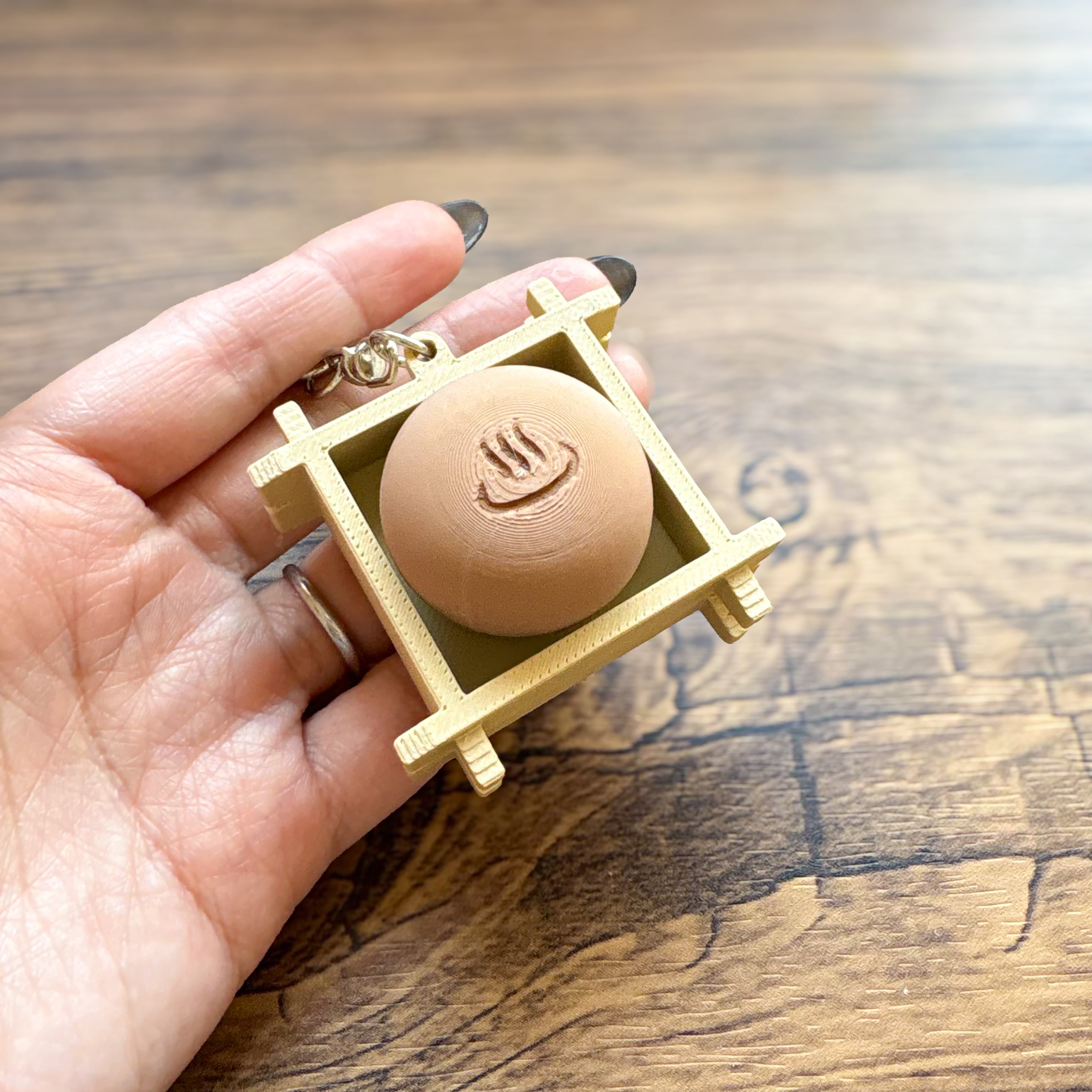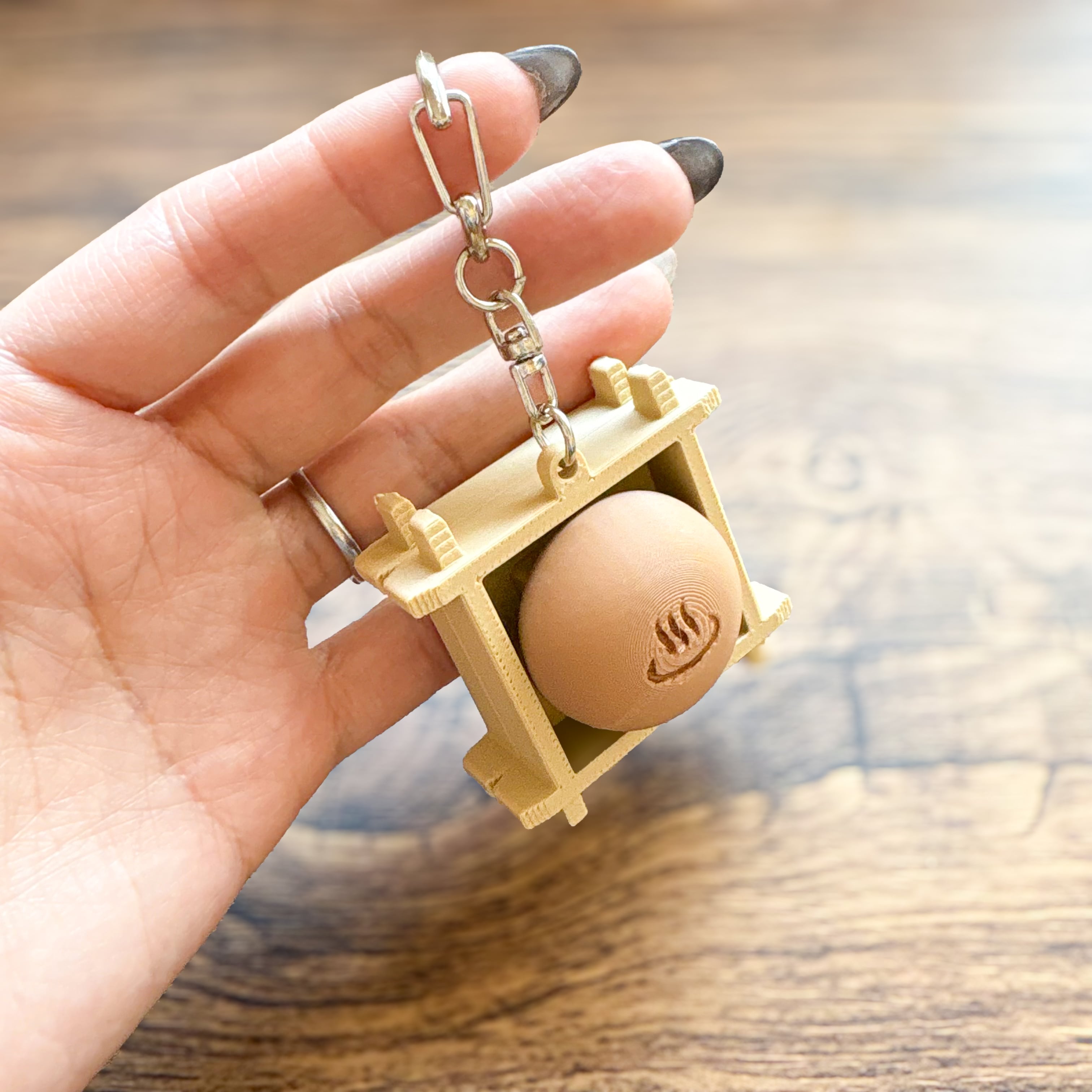 キーホルダー付きでバッグなどにも付けられます。