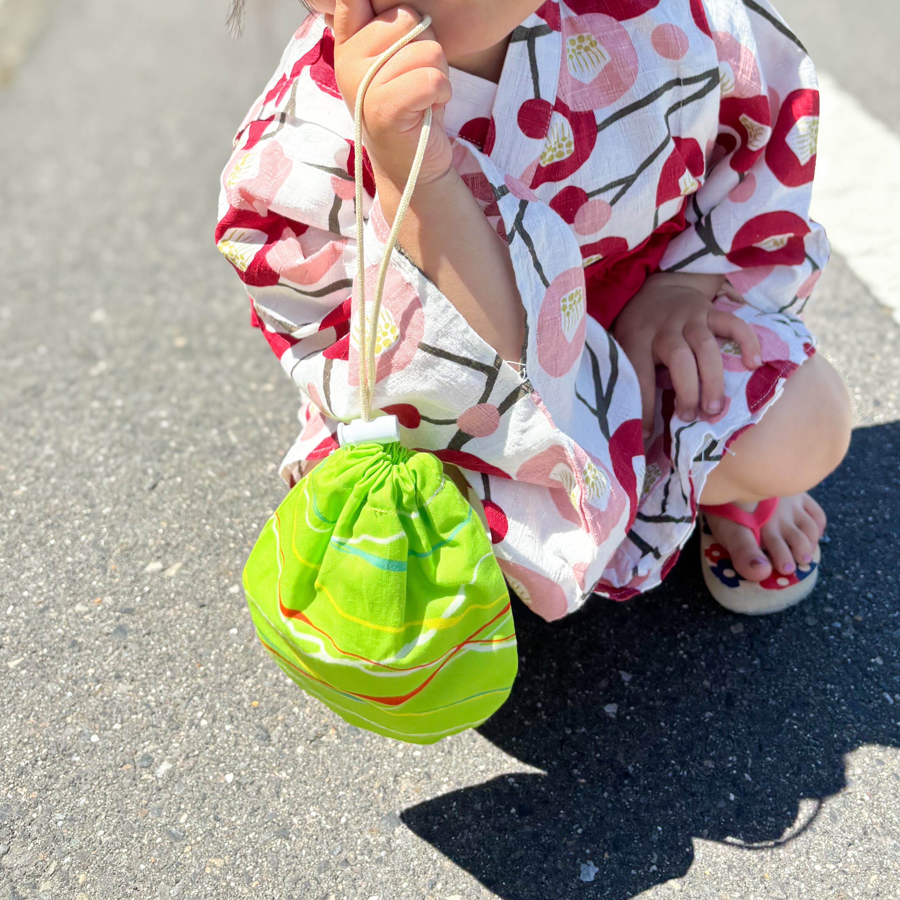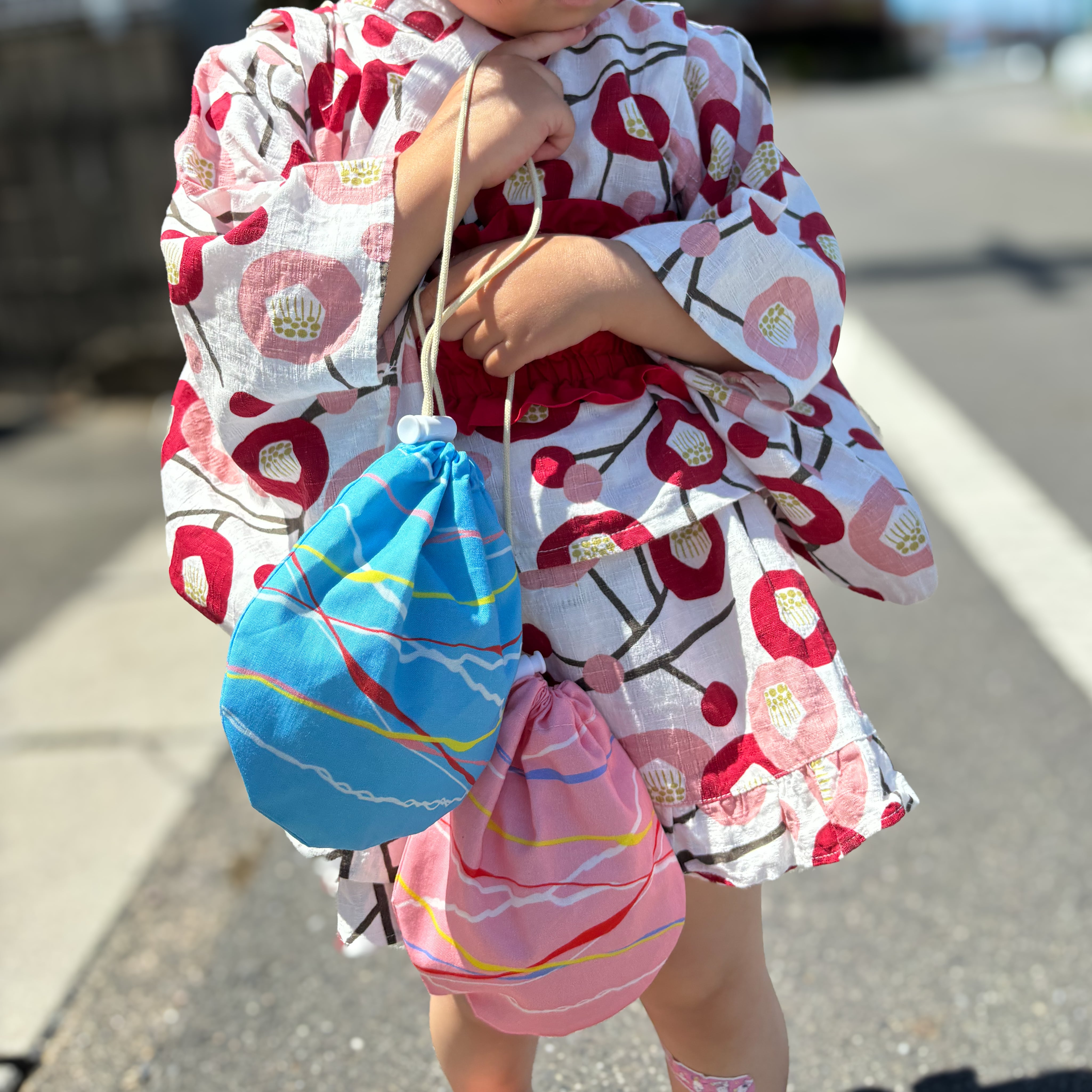 お祭りの定番!ヨーヨーをモチーフにした巾着です。