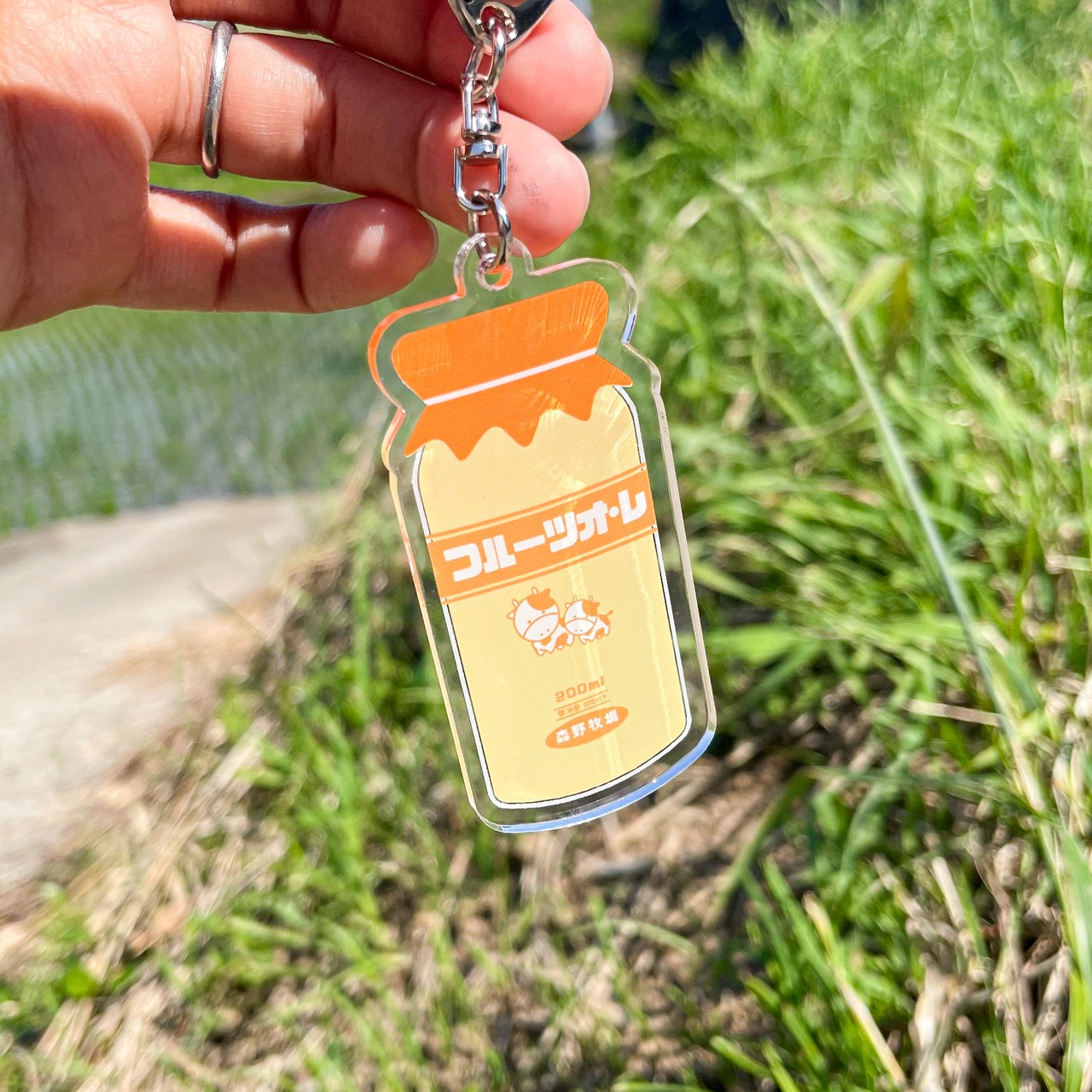 森野牧場のフルーツオレをアクリルキーホルダーにしました。